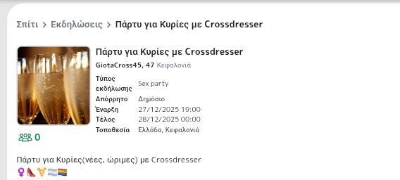 Πάρτυ για Κυρίες(νέες, ώριμες) με Crossdresser ♀️👠⚧️🏳️⚧️🏳️🌈 27/12/2025 19:00 Κεφαλονιά